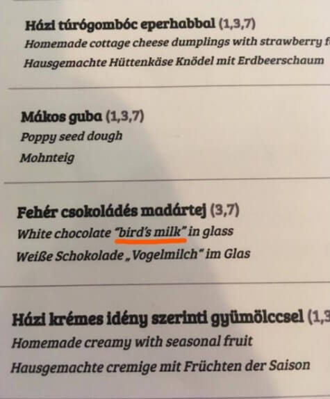 […] Szóval, a madártej angolul nem „bird’s milk”, hanem „floating island”. Hogy az „in glass” mit keres ott és mit akar jelenteni, azt talán sejtem, de ettől nem lesz jobb.